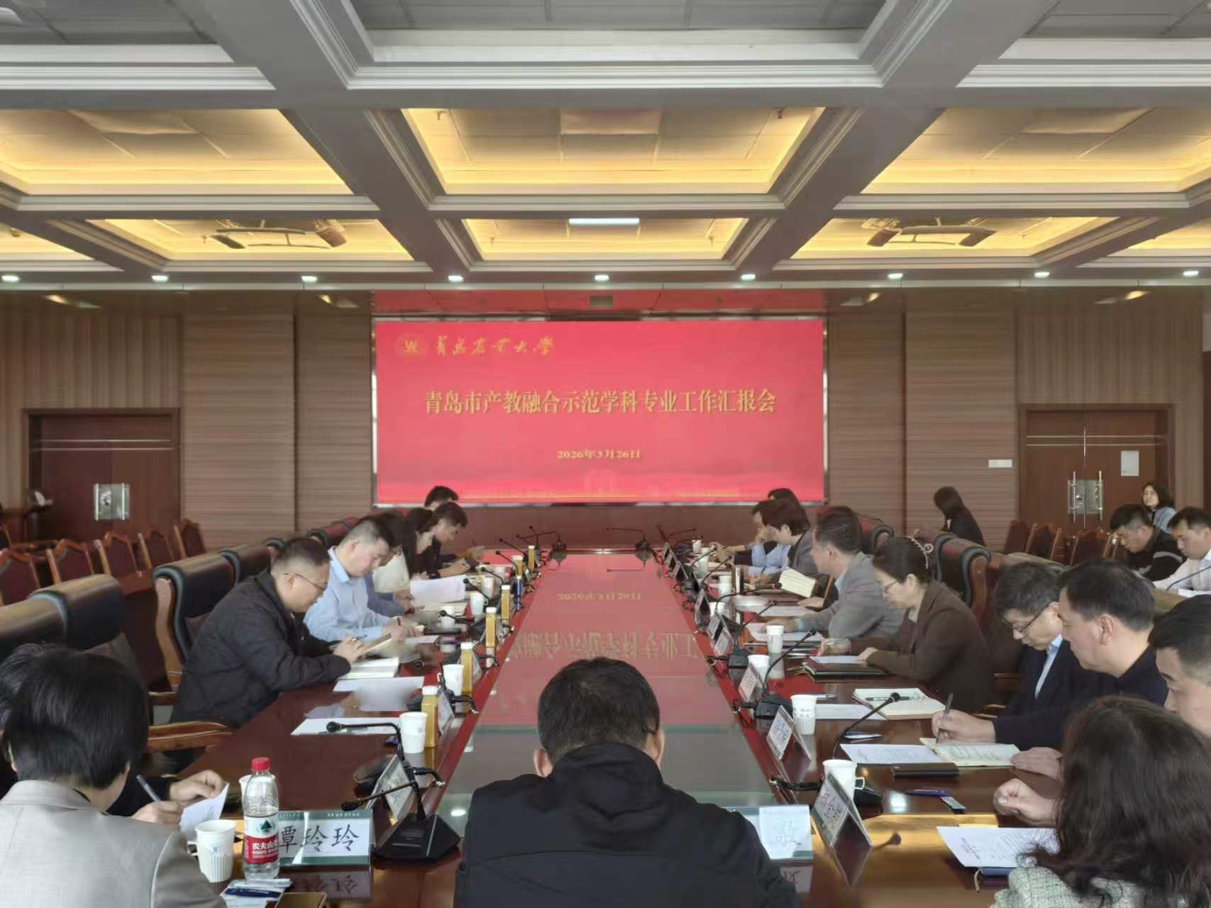 2026 年 3 月 26 日下午,青岛高等教育校地融合服务中心主任刘晓明一行来校调研学校产教融合示范学科专业建设工作。校党委委员、副校长张玉梅出席会议,发展规划与学科建设处处长宋伟主持会议。